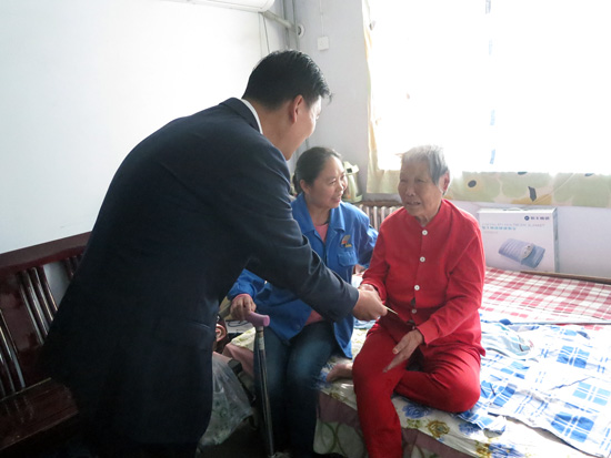 10月21日是一年一度的重阳佳节,管城区人大常委会副书记、副主任王彬彬莅临陇一社区,对辖区内长寿老人进行走访慰问。区民政局局长周满堂、陇海马路街道领导刘本勇、郭磊、陈瑞勇陪同慰问。 王主任一行首先来到百岁老人孙玉清家中,亲切地与老人拉家常,询问其身体和生活情况,并送上慰问金。 在90岁老人王俊英家中,王主任嘱咐老人的家人要多关心老人的身体健康状况,并要求街道和社区要多关心和帮助老人,让老人安享晚年。