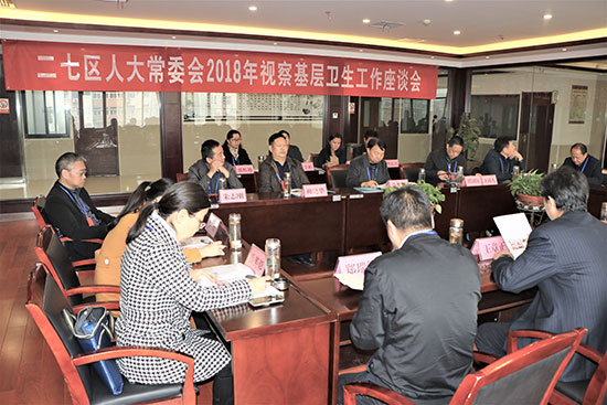 11月15日上午,郑州市二七区人大常委会组织部分市区两级人大代表对全区基层卫生工作进行了视察。二七区领导许广佑、翟国防、柳建华、周国堂、朱志刚、孙兴伟、李雅及部分市区两级人大代表参加了视察。
