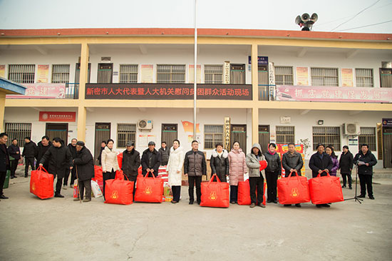 1月8日,新密市人大常委会主任桑萌莉,党组副书记许东凡,副主任秦耀堂、王敬梅、岳慧玲、王彦国,党组成员李霞,带领部分人大代表、人大机关全体人员深入到米村镇蔓菁峪村,举行“送温暖、献爱心”春节慰问活动,现场为贫困群众发放了70袋大米、140袋面粉、70箱方便面、70桶食用油和70条棉被。