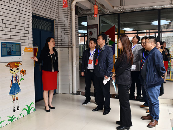 执法检查组在郑州市实验小学察看智慧校园建设工作情况