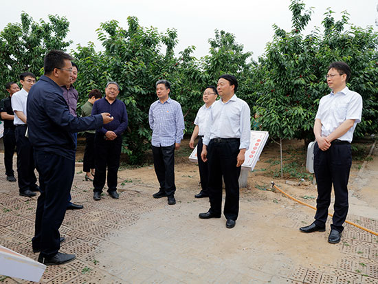 樱桃沟管委会主任齐新华介绍联社支持的樱桃种植户的具体情况