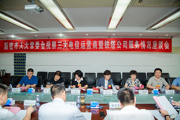 7月10日,新密市人大常委会组织部分人大常委会委员和市人大代表,实地察看了市电信公司、联通公司、移动公司的营业厅和机房运行情况,并召开座谈会,听取三大通信运营商和铁塔公司工作情况报告。