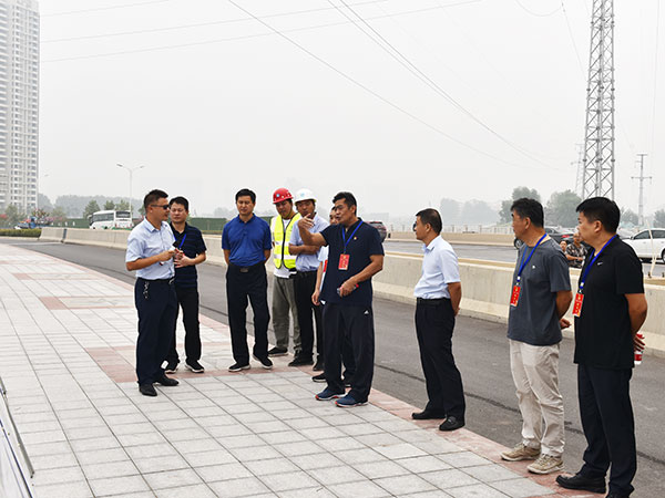 视察组成员在贾鲁河综合治理项目现场听取有关负责人的工作汇报
