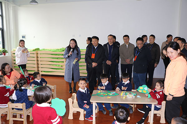 代表们在二七区第一幼儿园赣江路园,代表们到教室与孩子们交流