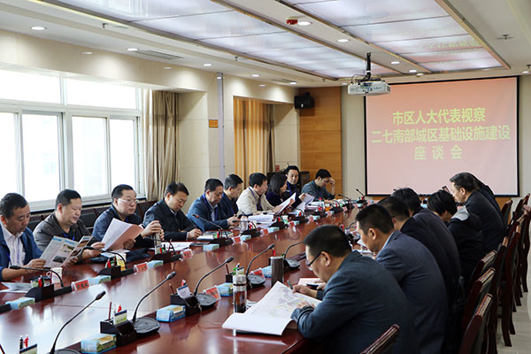 代表们一行先后实地到杏园路和双铁路、杏园变电站、侯寨水厂等几个项目工地,听取了项目情况介绍。随后,在二七新区管委会四楼会议室召开座谈会。会上,二七新区管委会副主任张建森、区建设和交通局局长刘京威等作了工作汇报,副区长李雅作了相关情况介绍。与会代表纷纷发言,从加快基础设施项目建设速度、项目建设超前规划等方面提出了具有建设性的意见和建议。