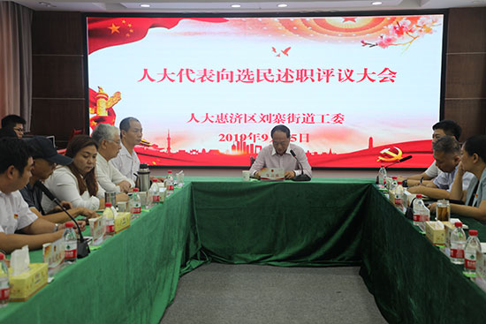 惠济区在2017年代表换届伊始,就提出了“届内每位代表至少要述职一次”的要求。2019年,区人大常委会在总结2017年和2018年代表述职经验的基础上,进一步规范和提升,将9月定为“人大代表集中述职月”。一月内,共有31名人大代表到选区向选民述职,占全区代表总数的1/5。在述职代表中,有的是企业家,有的是农民,有的是律师,有的是社区工作者,有的是老师,有的是干部。但无论有几个职务、几个称谓,向选民述职时,他们只有一个身份——人大代表。