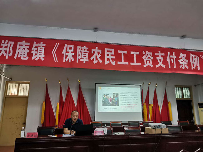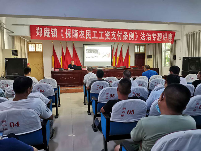 为保护广大农民工的合法权益,推进保障农民工工资支付工作法治化、规范化进程,7月9日下午,中牟县郑庵镇人大联合镇司法所、劳保所邀请河南闻禹律师事务所连松奎律师为全镇50家工地、企业负责人开展保障农民工工资支付条例法治专题知识培训。