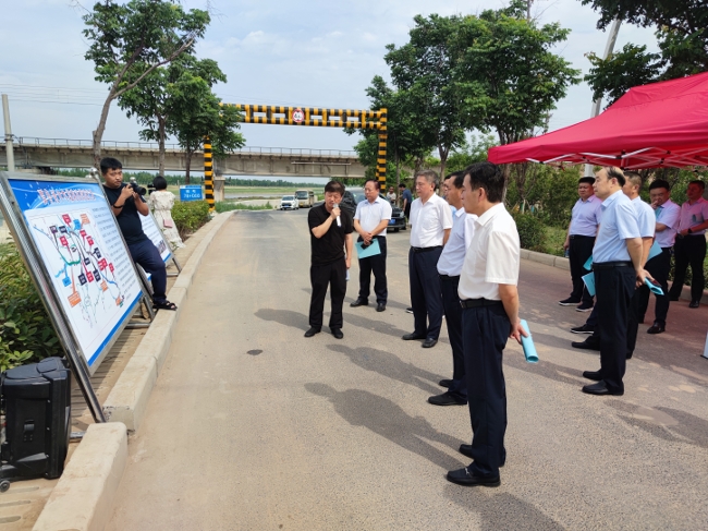视察组一行先后来到中牟县第四高级中学点位、贾鲁河2号雨水泵站、贾鲁河陇海铁路桥、黄河赵口闸等地实地视察,并认真听取相关点位负责人对中牟县今年加强汛前隐患排查、推进工程建设、制定防汛工作方案、做好物资保障和队伍建设、开展业务培训和宣传等工作情况介绍。