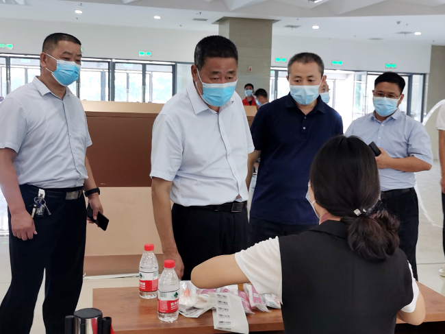 8月2日上午,中牟县人大常委会领导魏玉坤到刘集镇名门紫园、海宁皮革城核酸检测点现场督导疫情防控工作。