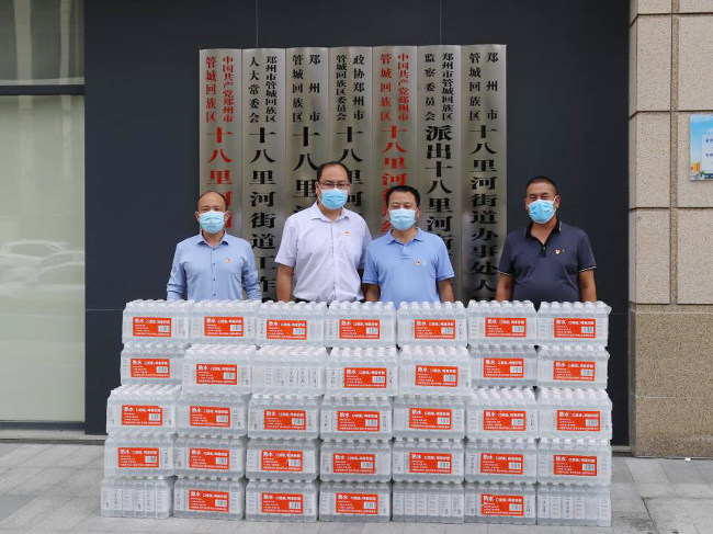 区人大代表张进朝、沙宁、甄海昌、肖飞为二里岗街道的核酸检测点送来空调扇、矿泉水、冰块等物资,为工作以及医护人员送来了清凉。颜顽梗代表捐赠了250套隔离服、100套防护面罩,为疫情防护贡献力量。区人大代表、河南金马工贸有限公司总经理黄涛向十八里河街道积极捐赠冰块15吨和60件饮用水,向冲在一线的医护工作人员献爱心、送清凉。