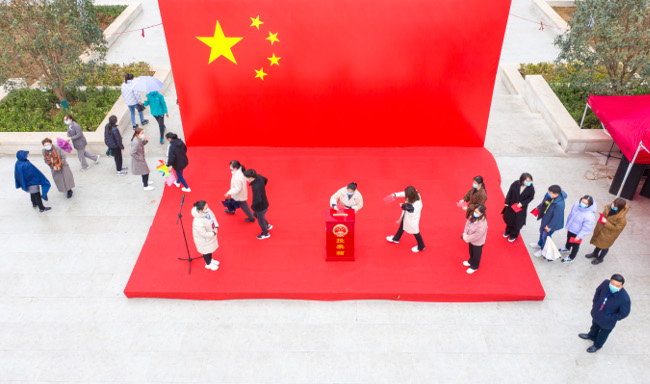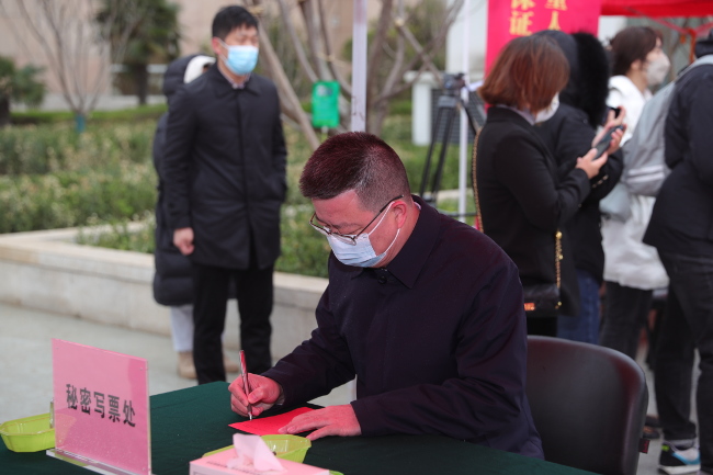 在位于区机关大院广场的区直机关第一选区中心投票站,以五星红旗为背景的巨型背景墙鲜艳夺目,镶嵌着金色国徽的投票箱端放正中,现场氛围庄重而热烈。上午8:20分许,区委书记魏东、区长丁文霞、区人大常委会主任王雅伟、区政协主席张卫民等领导来到投票站,在扫码、体温检测后,认真观看投票站各项展板,详细了解各位候选人情况,仔细听取投票注意事项说明。8:30分,区领导与机关选区选民一起参加机关选区投票选举启动仪式,面向国旗庄严肃立、奏唱国歌。8:40分,投票正式开始。区委书记魏东首先走到领票处,将选民证交给工作人员核验,领取选票,在写票处认真填写选票后走到投票箱前,郑重投下自己的一票。之后,区领导和区直机关选区选民依次进行了投票。选举现场组织严密,秩序井然,洋溢着庄重、民主、和谐的气氛。区委副书记李伟光等区领导也分别通过委托他人投票等方式,选举所在选区的人大代表,履行一名普通公民的权利和义务。