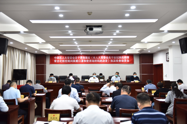 为有效防控新冠肺炎疫情,坚决阻断疫情传播,推动《郑州市人民代表大会常务委员会关于新冠肺炎疫情常态化防控期间佩戴口罩和使用场所码的决定》(以下简称《决定》)在我区的贯彻执行工作,5月18日,中原区人大常委会召开中原区贯彻落实《决定》执法检查动员会,对执法检查进行会前学习培训和工作部署。区人大常委会主任、党组书记薛晓军出席会议并讲话。会议由区人大常委会副主任、党组成员郭明立主持,区人大常委会副主任、党组成员吕文传达了市人大常委会《决定》精神,解读本次执法检查工作方案并安排部署执法检查工作。区人大常委会副主任刘花明,区人大常委会党组副书记吴明勇,区人大常委会党组成员李艳玲、樊立伟,区政府二级调研员魏强参加会议。