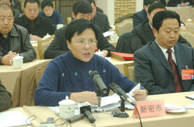 民建郑州市委副主委何秋玲代表首先发言。她认为,农民工就业存在缺乏源头管理、盲目进城、无序流动、工作难找,维权难、讨要工资难,缺乏对城市黑中介的监管手段三大问题。“2004年,我市在109个乡镇成立了劳动力转移就业管理服务机构,举行专场招聘会,并在全国其他城市成立了21个劳务输出1作站,这些举措非常令人欣慰。”何秋玲代表赞赏地表示。但她同时认为,下一步政府应该想方设法进一步做好农村劳动力的转移工作,采取有效措施开发公益性岗位、扶持困难群众实现就业,“只有这样才能让广大农民真正富裕起来”。