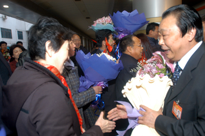 郑州人大网3月15日讯:今天早上7点10分,参加十届全国人大四次会议的驻郑全国人大代表乘火车返回郑州。