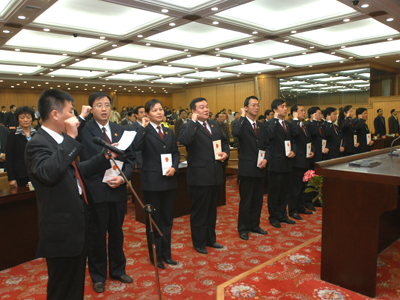 会上,被任命的法律职务人员接受了任命书,并举行了庄严的宣誓仪式。