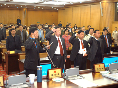 会议向被任命人员颁发了任命书,并举行了庄严的就职宣誓仪式。