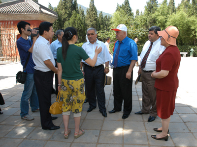 郑州人大网6月15日讯:应全国人大中国—塔吉克斯坦友好小组的邀请,以塔吉克斯坦议会下院塔中友好小组议员小组主席萨利莫夫为团长的代表团一行5人于6月14日至16日来河南进行友好访问。今天上午,市人大常委会副主任王平、民侨外工委主任马伏龙陪同代表团访问并参观了少林寺。