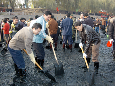 郑州人大网12月12日讯:郑州市人大常委会机关积极响应市委、市政府“省会军民会战东风渠清於”大会战活动,东风渠清於工程是省会的形象工程,民心工程,是实现我市卫生城市的目标工程,市人大常委会领导十分重视,市人大常委会主任郝建生亲自参加了此次活动,市人大常委会机关各支部积极安排,踊跃参加。 通过这次活动,大家受到了一次很深的劳动观教育,树立了我为郑州建设添光彩的主人翁思想。