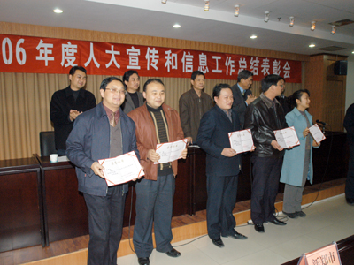 郑州人大网12月22日讯:今天上午,市人大常委会召开2006年度人大宣传和信息工作总结表彰会,会议由市人大常委会研究室主任岳德常主持。会议表彰了2006年度市人大宣传和信息工作27个先进个人和4个省级先进单位、16个市级先进单位,颁发了荣誉证书。巩义市、金水区人大常委会介绍了人大宣传和信息工作先进经验。会议传达了《郑州市人大常委会中共郑州市委宣传部关于认真做好新形势下人大宣传工作的意见》。市人大常委会副秘书长柴清玉作了重要讲话。