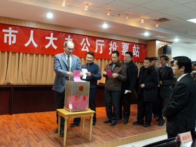 上午9时,选民们在认真听取了有关选举事项的说明后,依次走到投票箱前,郑重地投下了自己庄严的一票。