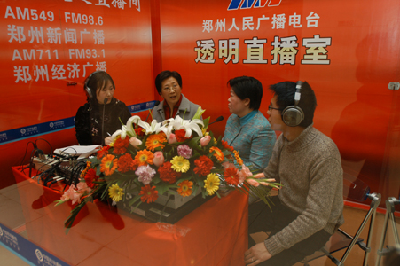 郑州人民广播电台AM549 FM98.6新闻广播和AM711 FM93.1经济广播在郑州市第十二届人大四次大会期间(2月2日至2月7日),在嵩山饭店设置透明直播间,每天邀请人大代表走进直播间,就广大群众关心的热点话题进行访谈,向听众传递最新最快的人大会信息。