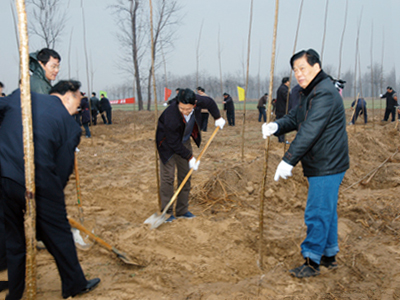 郑州人大网2月28日讯:今天的郑州春风细雨。上午市人大常委会副主任李保山、魏深义、尚有勇、王旭彤、张发亮带领常委会机关人员来到中牟县国有林场,栽植防风固沙林。尽管天空下着小雨,春风微寒,但大家依然热情高涨,纷纷拿起铁锨,放树扶正,填土踩实,忙得不亦乐乎!不到半天,一片白扬小树林呈现在林场的沙土地上,横竖成排,非常整齐。