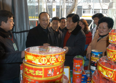 郑州人大网2月2日讯:今天是我市春节烟花爆竹销售的第一天。今天下午,市人大常委会党组书记白红战,副主任李保山、王平、栗培青、尚有勇、王旭彤、张发亮等带领我市部分人大代表检查烟花爆竹安全管理和销售情况。