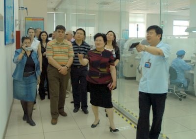 在市人大常委会副主任王平的陪同下,斯特凡•格勒万一行首先考察了郑州威科姆科技股份有限公司。
