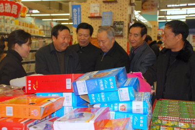 代表们分别对易初莲花紫荆山路大卖场、紫东苑番麦士农夫市场、大商新玛特建设路店和水产大世界等地进行了实地视察。