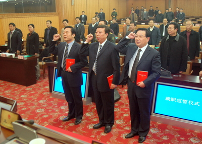 经过认真审议,下午的全体会议以无记名投票的方式,表决通过了有关人事任免案。会议决定,任命张学军为郑州市人民政府秘书长,郑友军为郑州市司法局局长,王万鹏为郑州市房地产管理局局长。市人大常委会主任郝建生向被任命人员颁发了任命书,并举行了庄严的宣誓就职仪式。