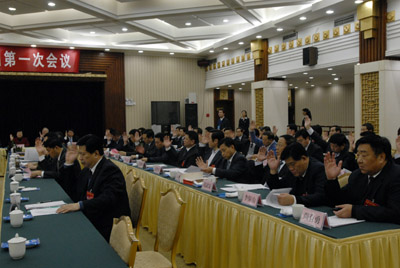 会议以举手表决的方式通过了市十三届人大一次会议议程,选举产生了大会主席团和秘书长,通过了大会计划、财政预算审查委员会组成人员名单和议案审查委员会组成人员名单。