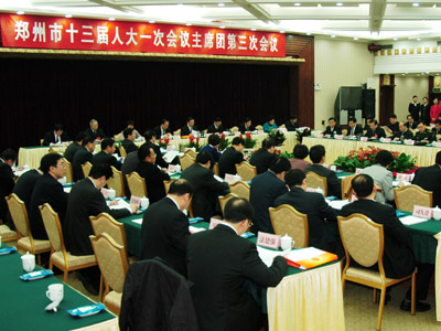 郑州人大网3月4日讯:市十三届人大一次会议主席团今天下午举行第三次会议。 主席团常务主席王文超、郝建生、马懿、白红战、栗培青、王平、王旭彤、雷志、刘全心出席会议。