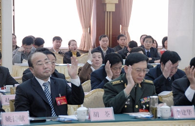 经过认真审议,会议以举手表决的方式确定了上述候选人名单和市十三届人大法制委员会组成人员人选名单。
