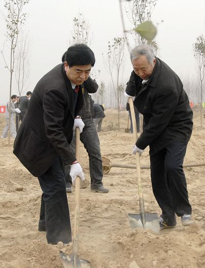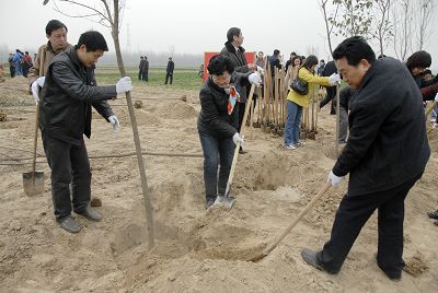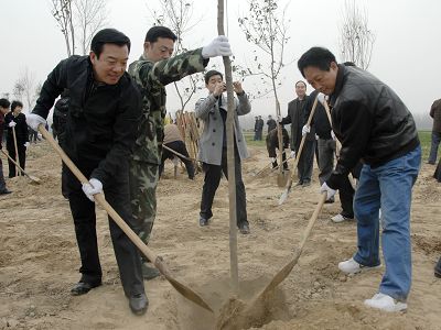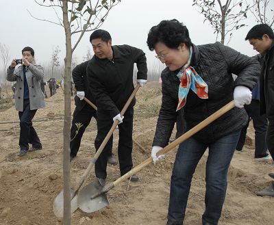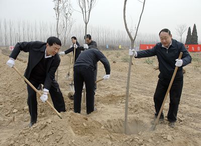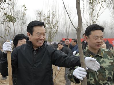郑州人大网3月11日讯:春风润绿城,万木绽新绿。在第31个植树节到来之际,今天上午,人大常委会主任白红战,副主任王旭彤、王平、刘全心、贾记鑫、李元法、周长松,秘书长刘焕成和省市党政军领导一起,来到中牟县林场,与300多名干部群众一起参加义务植树活动,为建设生态郑州再添一片新绿。