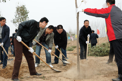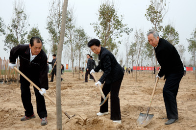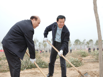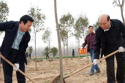 中牟县林场位于豫东平原沙区,经过多年植树造林,这里已由一个沙丘半沙丘地带,变成了保障当地工农业生产的生态屏障。下午3时许,徐光春、郭庚茂、陈全国、王全书等省领导来到这里,与数百名干部群众一起投入紧张欢快的劳动中。省委书记、省人大常委会主任徐光春在植树活动结束时,对进一步加强造林绿化、推进林业生态省建设作了重要讲话。