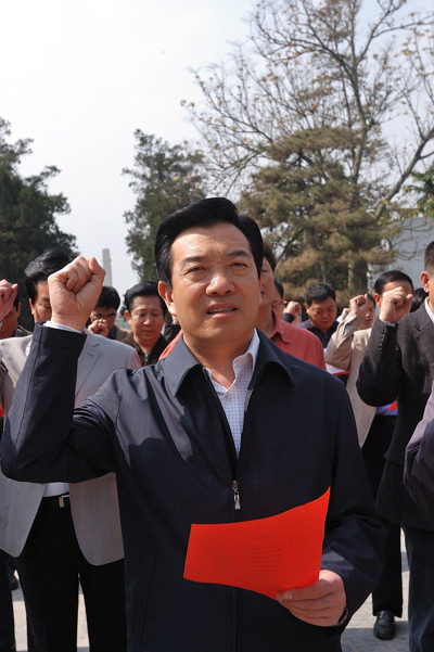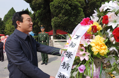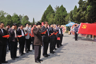 在焦裕禄烈士陵前,举行了简洁而庄重的拜谒仪式。市人大常委会主任白红战代表常委会机关全体党员干部向焦裕禄烈士敬献了花圈,表达了对这位县委书记的好榜样、忠诚的共产主义战士、人民的好儿子的崇敬和思念。全体同志在焦裕禄陵前庄严举起右手,重温入党誓词,并怀着无比崇敬的心情来到展馆参观了展品和图片。