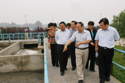 上午,执法检查组实地查看了黄河水源厂花园口饮用水源地保护情况,市自来水公司总经理张湛军现场汇报了水源地经营和保护情况,黄河水源厂为郑州市自来水总公司和中法水务投资有限公司合作经营企业,以原水生产为主,通过引用黄河水源,经初级沉淀和二级沉淀后,向郑州提供合格原水,目前日供水能力40万立方米,容积350万立方米,供郑州市130余万人口的饮用水及工业用水。尔后调查组查看了王新庄污水处理厂和中牟县污水处理厂运行情况,听了单位负责人的情况介绍,查看污水处理厂运行工作程序,代表们向单位负责人询问了污水处理厂日收集污水量,覆盖面积,污水处理达标合格率,二期工程扩建等情况,并现场提取样本检验污水处理后水质达标情况。