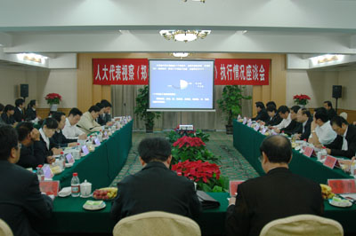 实地察看后,在黄河迎宾馆,大家进行了座谈。会议由市人大常委会城建工委主任张文田主持。市政管理执法局局长余遂盈代表市人民政府作了《郑州市城市供水管理条例》执行情况的汇报。市节水办主任任长江,市自来水公司总经理张湛军也分别就所属部门的供水管理等具体工作作了汇报。