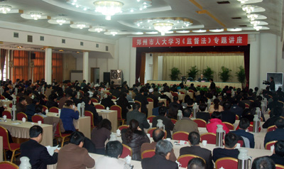 郑州人大网12月8日讯:今天上午,市人大常委会邀请全国人民代表大会法制委员会原副主任委员张春生到我市授课,对我市全国、省、市三级人大代表及市人民政府有关工作部门负责人进行培训。张春生围绕人大代表如何行使对“一府两院”实施监督的权力及“一府两院”如何接受监督进行了深入浅出的讲授。
