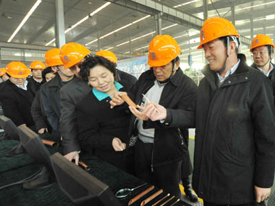 郑州人大网1月12日讯:为使人大代表全面了解我省经济社会发展情况,为参加省十一届人大三次会议做准备,今天,由市长赵建才、市人大常委会主任白红战带队的驻郑省十一届人大代表考察团在新乡市参观视察。