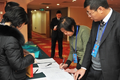 在代表报到现场,秩序有条不紊,工作人员早已把会议材料、证件、文具等分装入袋。许多代表一领到会议材料,就急切地拿出来浏览。到会代表个个精神振奋、热情洋溢,纷纷表示:要认真审议好大会的各项报告,提出优质的议案和建议,认真履行代表职责,不辜负全市人民的期望与重托。