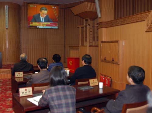 市人大常委会机关集体收看十一届全国人大三次会议开幕会(图)