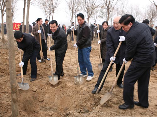 郑州人大网3月18日讯:今天上午,省市党政军领导和上千名机关干部、部队官兵一起,到郑州绿博园参加义务植树活动,用实际行动号召全省人民积极参加义务植树造林,绿化美化中原大地,建设生态文明,为中原崛起创造可持续发展环境。