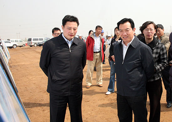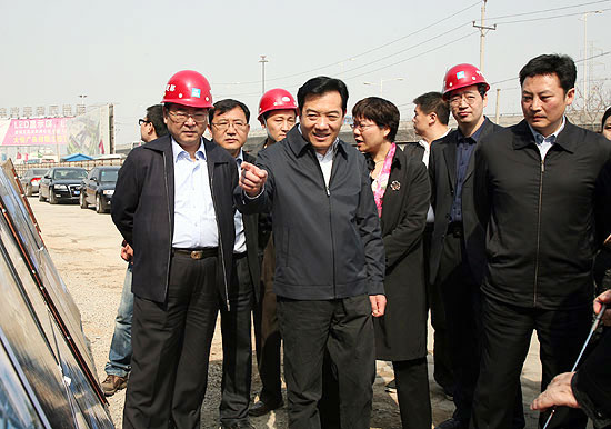 郑州市人大常委会主任、市交通枢纽工程指挥部指挥长白红战(右二)和副市长张建慧