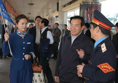 市人大常委会主任白红战向铁路工作人员了解郑西高铁运营情况
