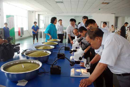 视察组观看河南华晶超硬材料股份有限公司人造金刚石成品