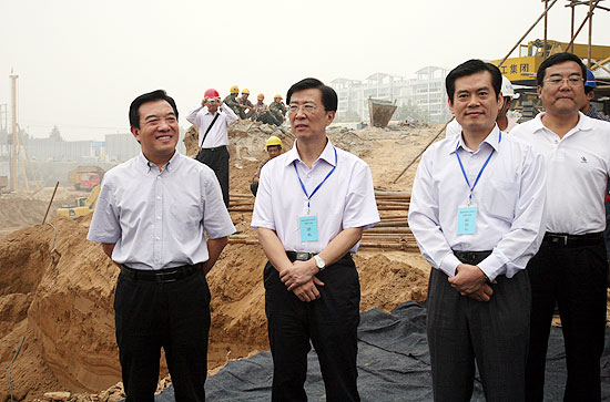市人大常委会主任白红战(左)与洛阳市人大常委会主任常振义(中)、副市长史秉锐在城中村改造现场