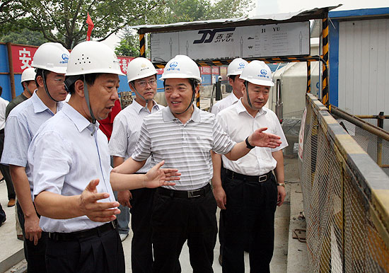 市人大常委会主任白红战(右二)视察我市轨道交通建设情况。 牛 章 摄