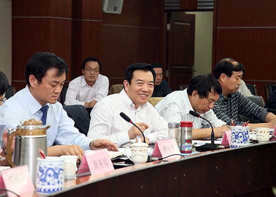 市人大常委会主任白红战(中)、副主任刘全心(右二),副市长薛云伟(左一)参加会议