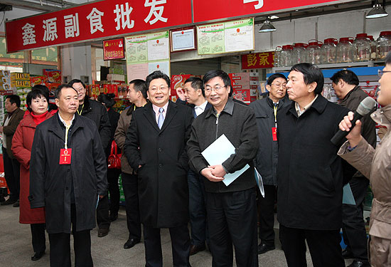 视察组一行在郑密路一农贸市场了解农副产品供销情况
